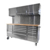 Stół warsztatowy ze stali nierdzewnej ze ścianką i szafkami górnymi ALFA-2-INOX